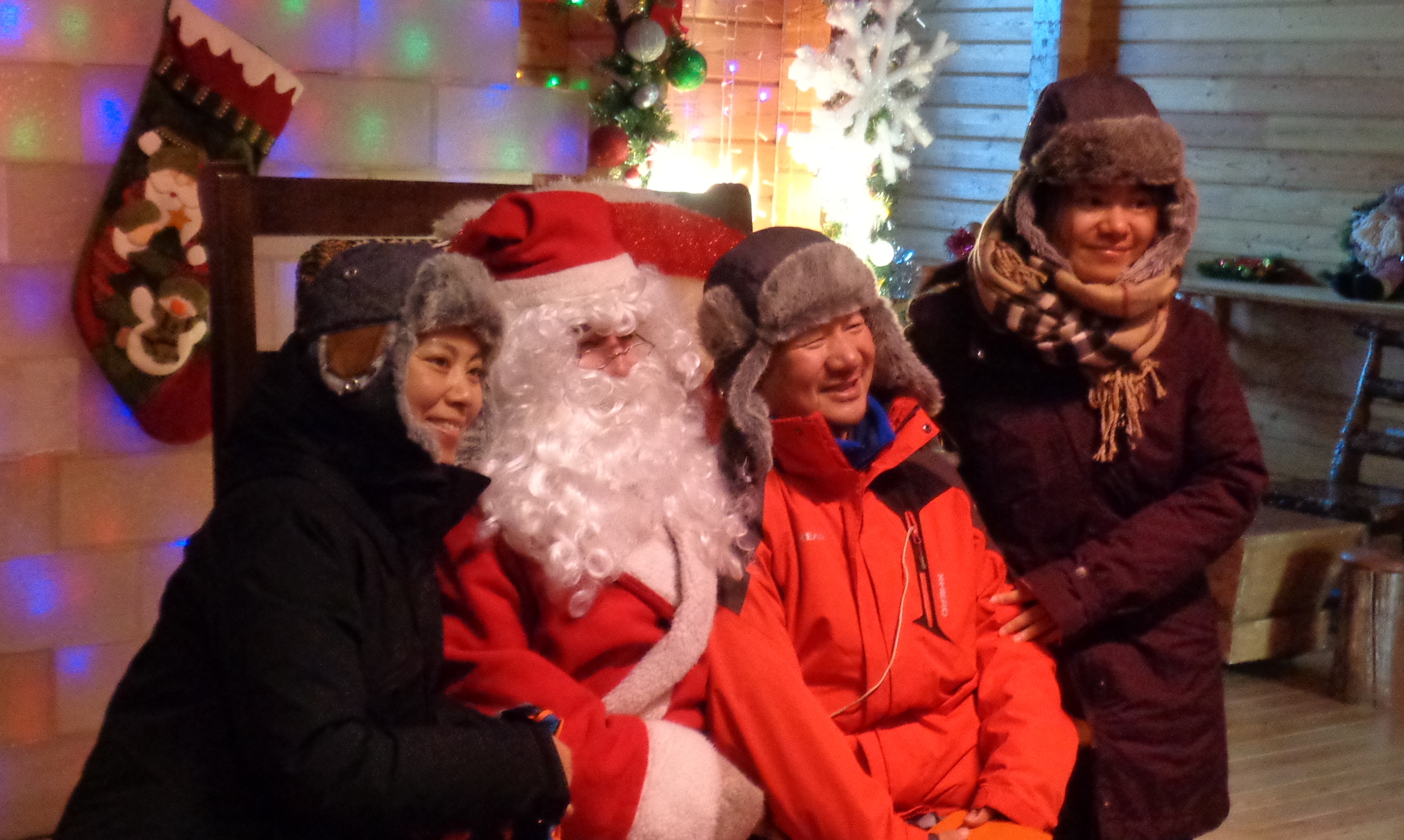 Mohen suomalainen joulupukki luo Suomi kuvaa ja promotoi esittein ja sovittavalla tavalla suomalaisten yritysten tuotteita. Pukin tavanneet haaveilevat käynnistä Suomessa. Kuva on otettu joulun alla 2014 Mohessa. Kuva julkaistu China Tekway Ltd:n luvalla (Timo P. Kiviaho). Kuvan Copyright China Tekway Ltd.