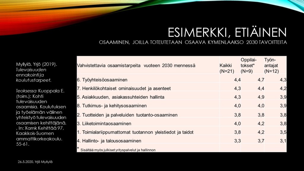 Myllylä Yrjö & Tuija Vänttinen (Eds.)., (2020). Etiäinen. Kymenlaakson koulutus- ja osaamistarpeiden ennakointi. 246 p. Xamk Kehittää 116, Kaakkois-Suomen ammattikorkeakoulu. (Etiäinen – Anticipation of training and competence and skills needs in Kymenlaakso). http://urn.fi/URN:ISBN:978-952-344-260-3 .