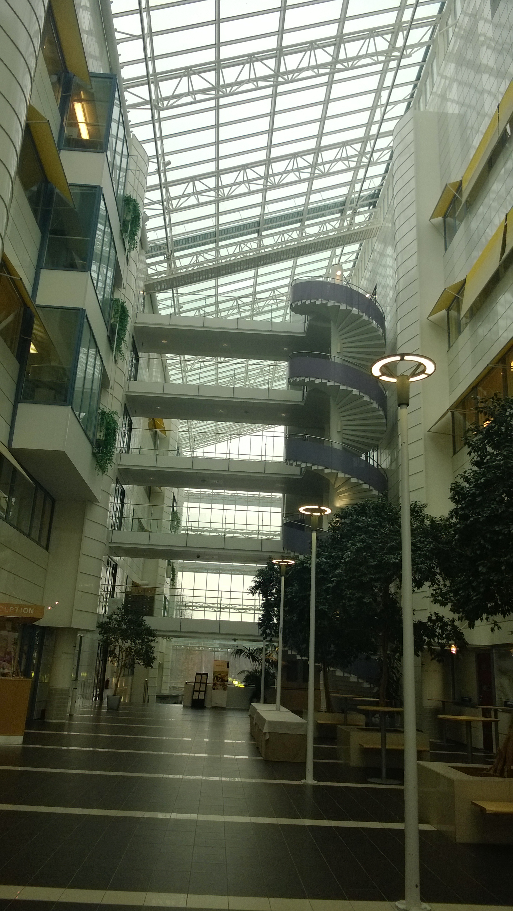 ”Kevyen liikenteen väylä” jatkuu toimistotaloihin sisälle. Kuvassa Medipoliksen toimistorakennus Oulun Kontinkankaalla. Talossa toimii mm. noin 160 yhdyskuntasuunnittelijaa työllistävä Ramboll Finland, Oulun yksikkö. Kuva YMy.